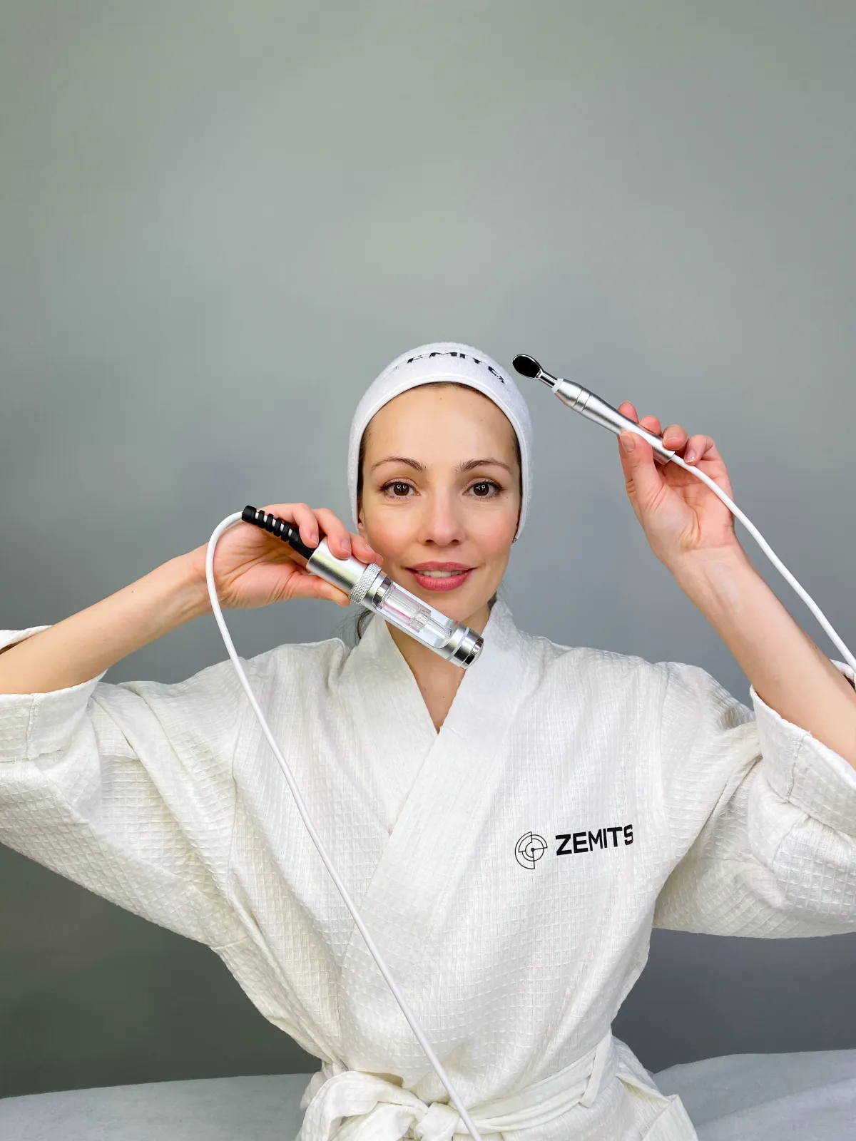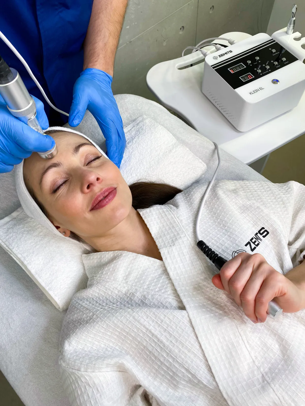 L'esthéticienne applique un sérum actif sur la peau préalablement nettoyée. L'électroporation augmente le niveau d'absorption des nutriments par la peau en stimulant la zone sélectionnée avec la pièce à main. Des microcanaux sont créés dans la couche médiane de la peau, facilitant la pénétration des éléments actifs en profondeur.