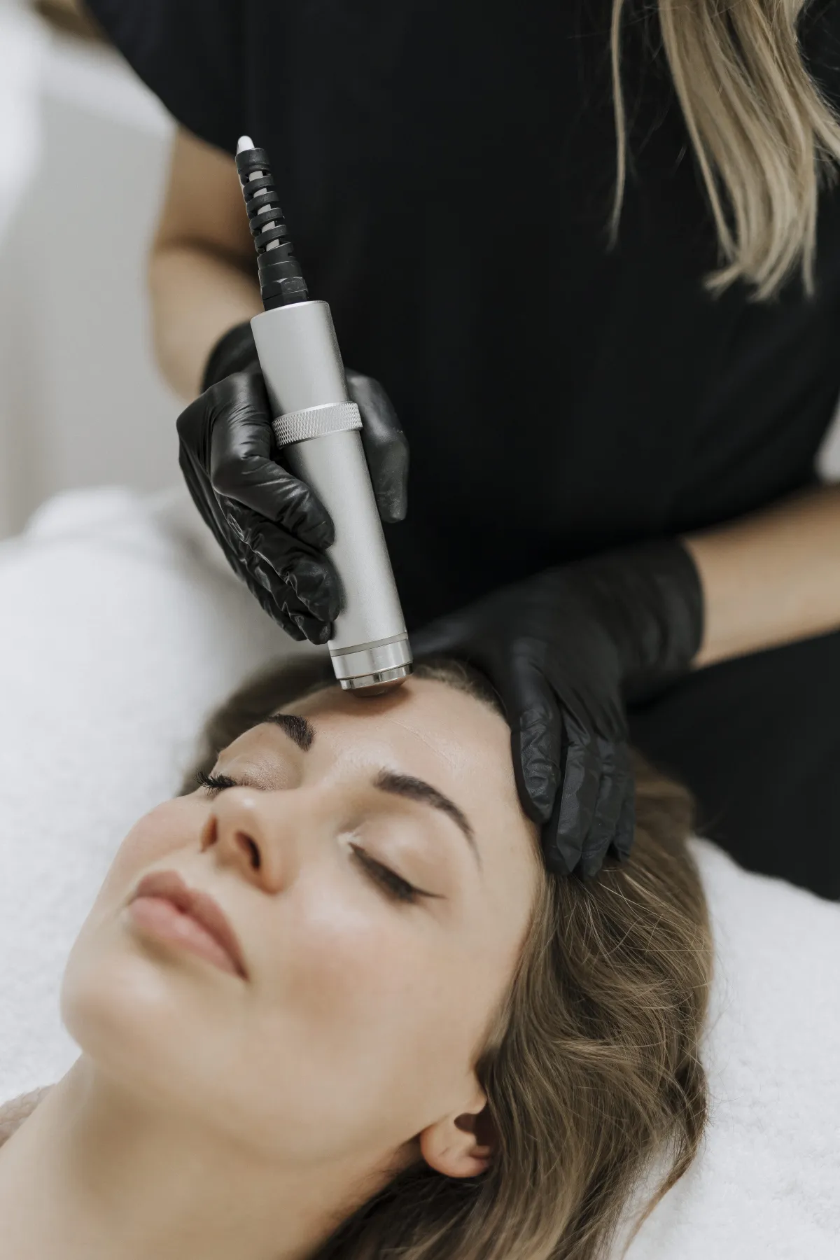 Administration d'actifs (acide hyaluronique, collagène, rétinol, cocktails anti-âge) directement dans la peau sans injection, pour un traitement indolore et efficace.