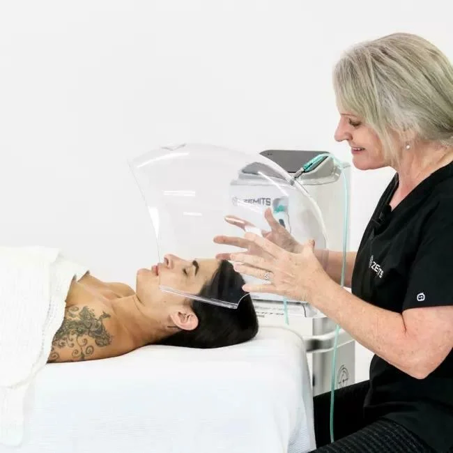 Zemits propose une large gamme de sérums avancés spécialement formulés pour maximiser les résultats de l'OxiVelour : anti-âge, anti-acné, éclaircissants et rajeunissants. Pour les opérateurs trichologiques, des sérums dédiés aux traitements capillaires (chute de cheveux, psoriasis, séborrhée, reminéralisation) sont également disponibles. En combinant la puissance du facial à l'oxygène avec ces sérums en infusion, vous augmentez significativement la consommation d'oxygène de la peau tout en réduisant la production de radicaux libres.
